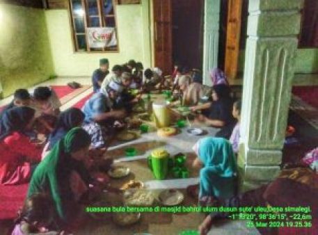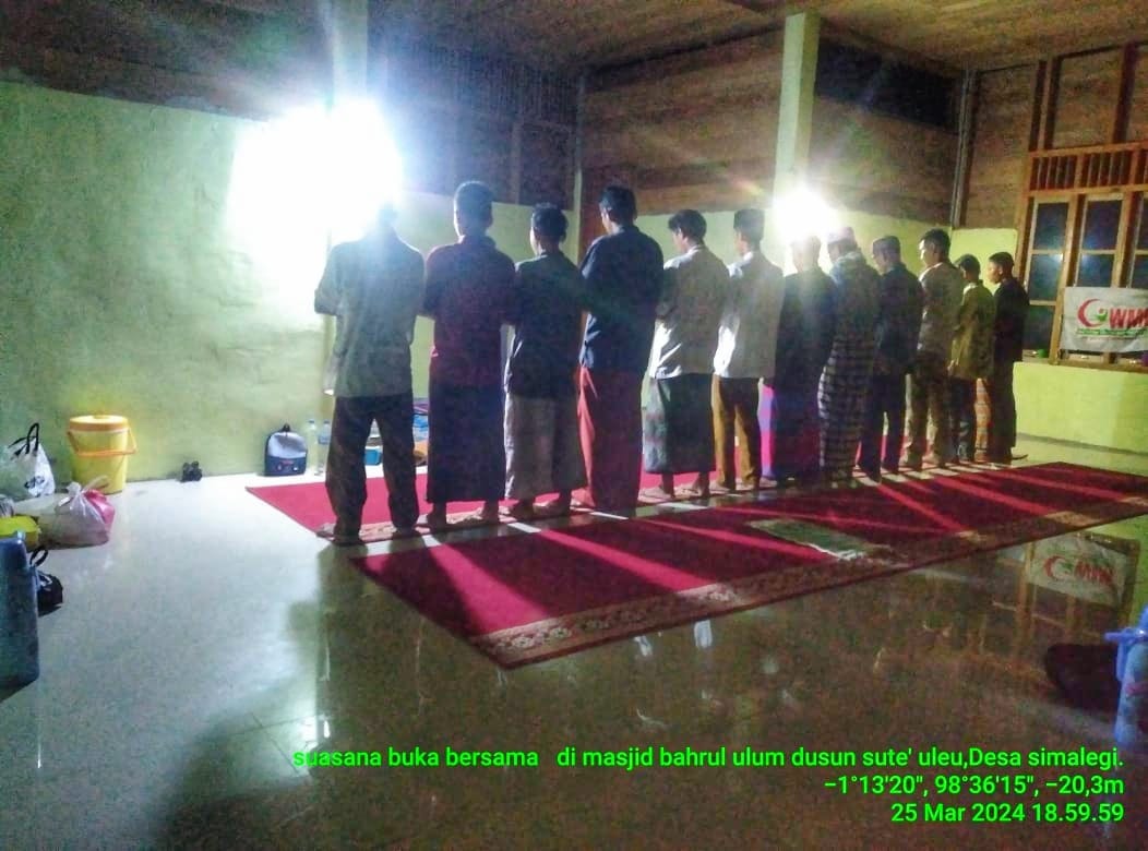Alhamdulillah tahun ini Warga sudah bisa shalat berjamaah, mengaji dan berbuka puasa dengan kondisi nyaman didalamnya, karena Masjid yang kami namai Masjid Bahrul Ulum itu kini insyaallah sudah dalam keadaan sempurna meski kemaren alat Inverter penampung Tenaga Surya mengalami kerusakan.