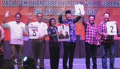 Dalam poling yang di lakukan oleh 5 media massa Nasional itu pasangan Anis Sandi menempati posisi tertinggi dan bersaing ketat dengan paslon nomor urut 2 Ahok – Djarot, sedangkan pasangan Agus – Sylvi yang diusung oleh Partai Demokrat, PAN, PKB dan PPP berada dalam posisi ke tiga.